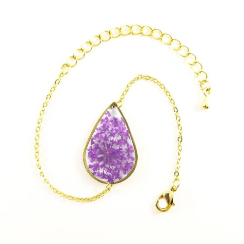 Nos bijoux floraux se distinguent non seulement par leur esthétique captivante mais aussi par leur durabilité. Chaque bracelet en fleurs séchées est conçu pour résister au temps, préservant la texture, la couleur et la forme authentique des fleurs. Notre technique de préservation minutieuse garantit des pièces uniques pour chaque cliente.